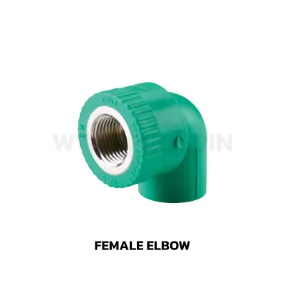 FEMALE ELBOW PPR ( ข้องอเกลียวใน PPR ) SDR6 PN20 ผลิตตามมาตรฐาน DIN ซึ่งเป็นมาตรฐานเยอรมัน ผลิตจากวัสดุ Polypropylene Random Copolymer (PPR) เป็นฟิตติ้งสำหรับเชื่อมต่อท่อ PPR ที่มีรูปร่างเป็นมุมฉาก 90 องศา มีเกลียวในสำหรับต่อกับ อุปกรณ์ที่มีเกลียวนอก เช่น วาล์วต่างๆ ใช้สำหรับเปลี่ยนทิศทางการไหลของน้ำในระบบท่อ ทำให้สามารถออกแบบระบบท่อให้มีความยืดหยุ่นและเข้ากับพื้นที่ได้มากขึ้น ขนาดดูได้จากตารางด้านล่างนี้
